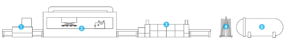 生產(chǎn)線主要由清洗干燥機(jī)、合片運(yùn)輸機(jī)、剪式吸盤吊架、手動(dòng)PVB膠膜鋪攤機(jī)、預(yù)壓機(jī)、合片房、蒸壓釜等部分組成。